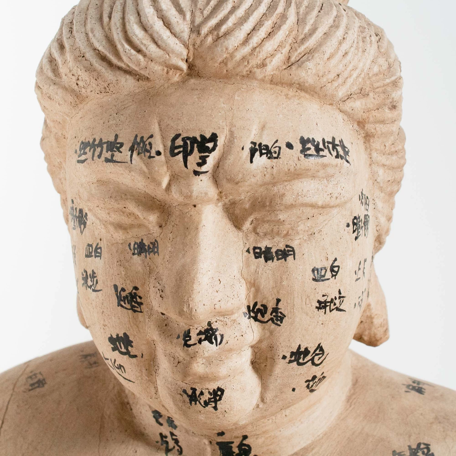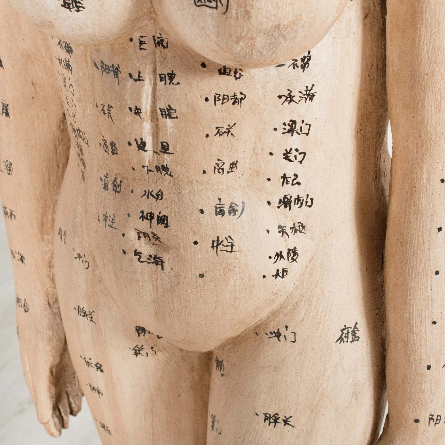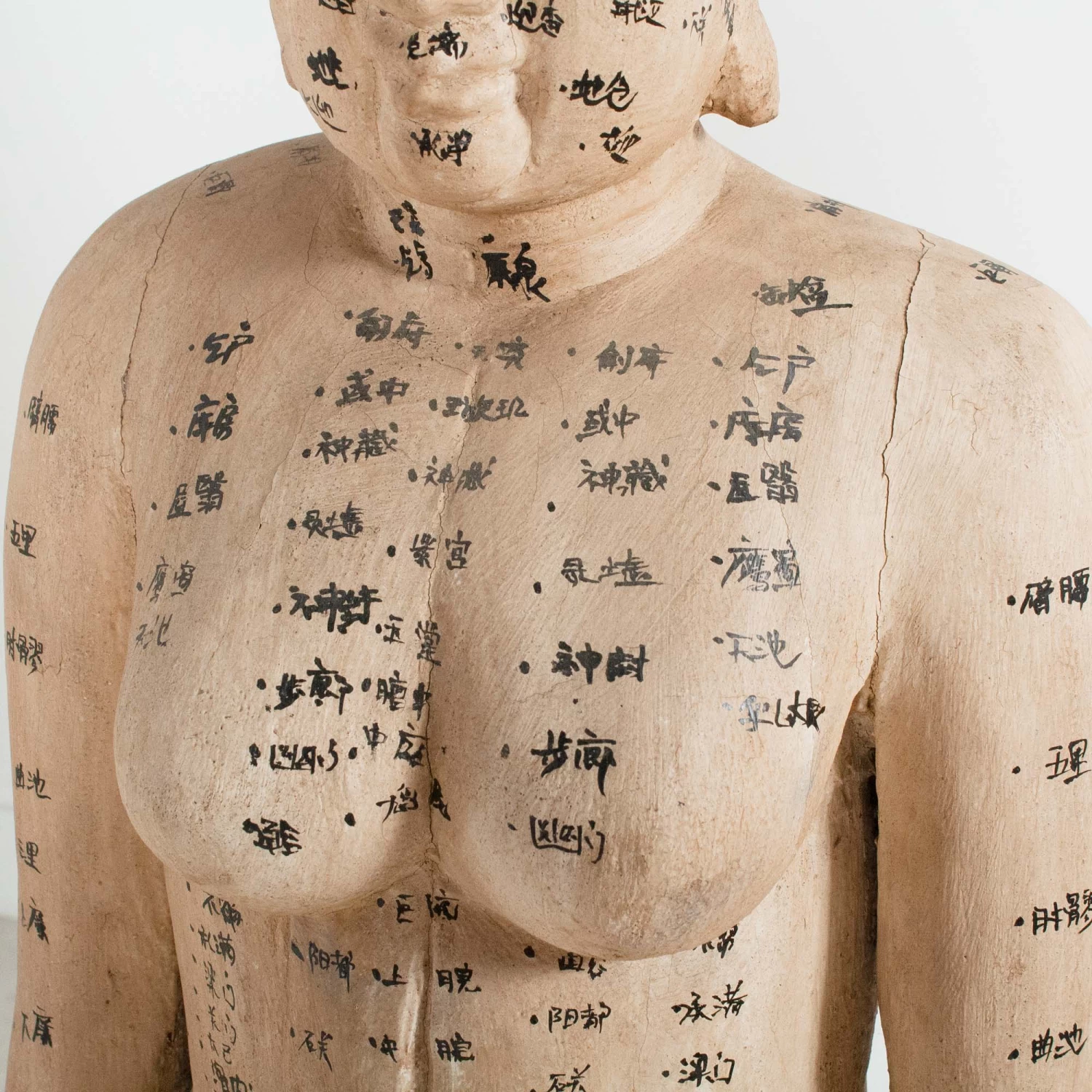Chinoiserie sculpture of a woman with acupuncture points made to look vintage.