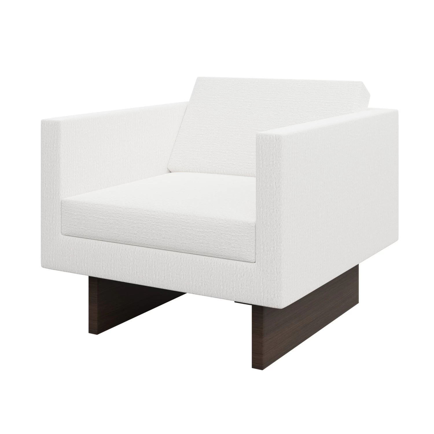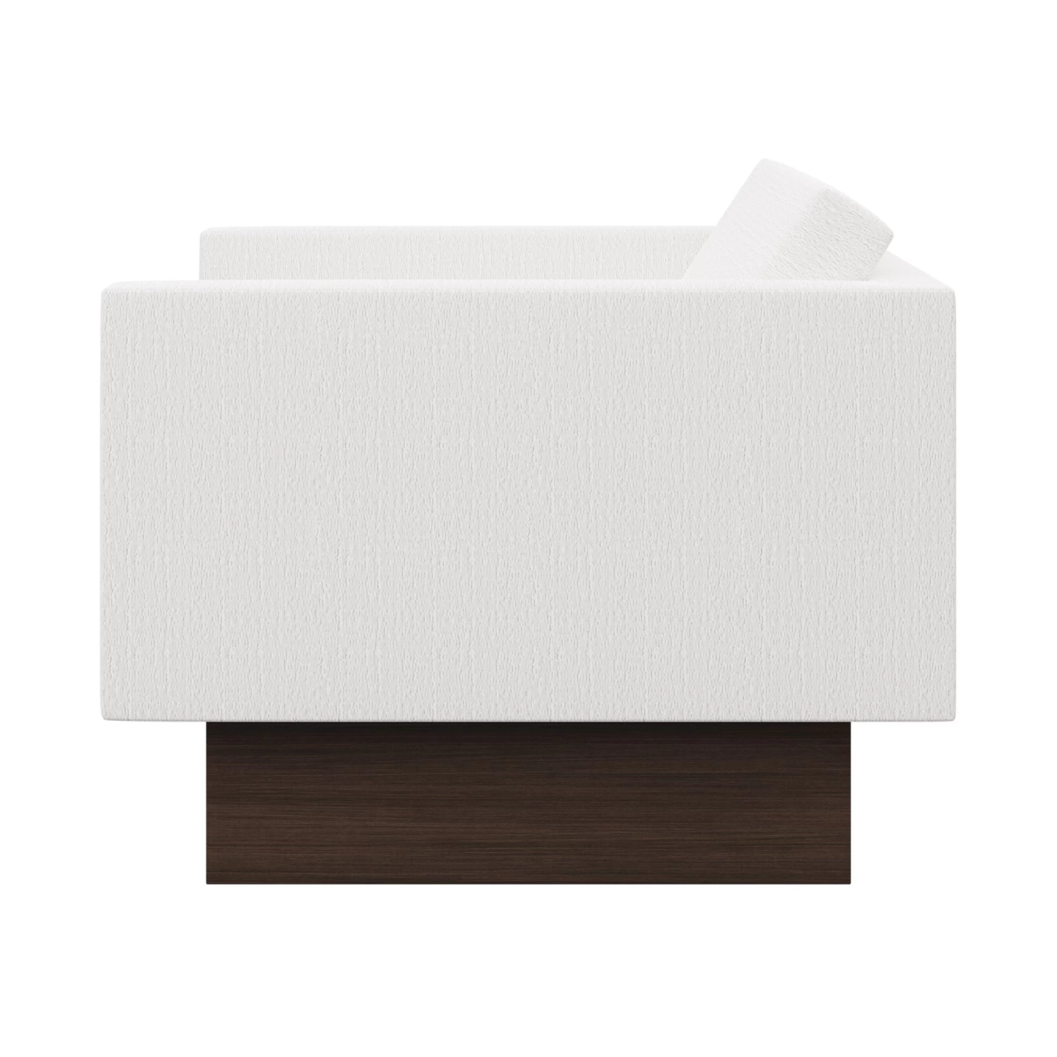 Structured lines and a wood base keep it simple so your fabric choice will shine. From a pattern fabric with contrast welting to simple velvet – the creative options are endless.