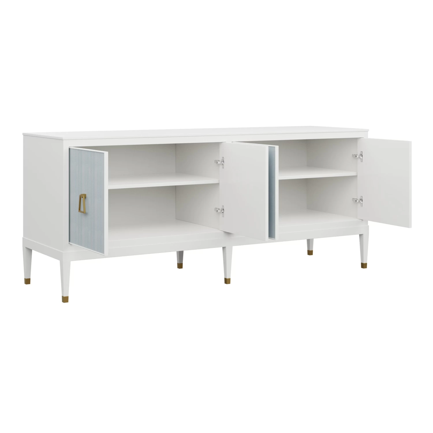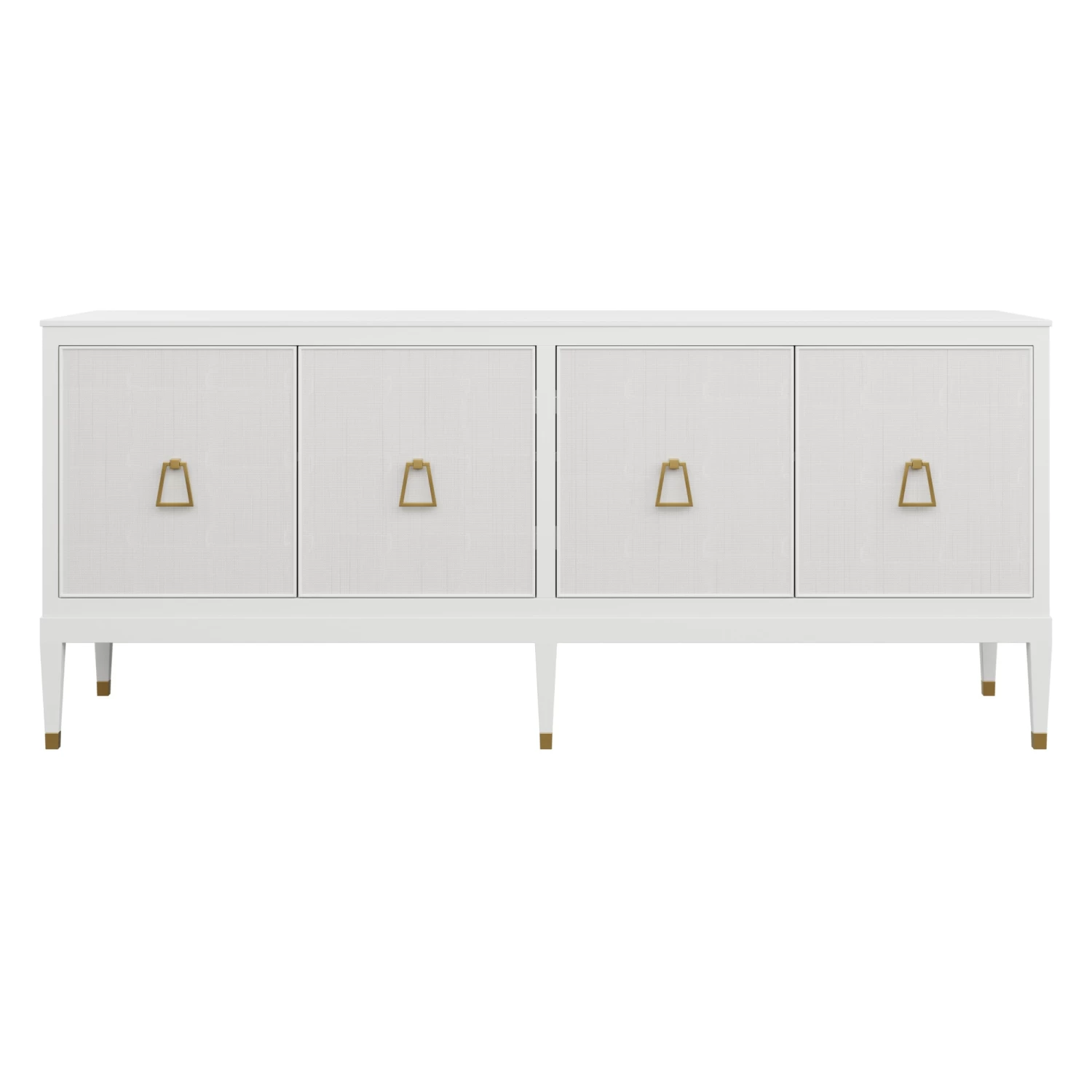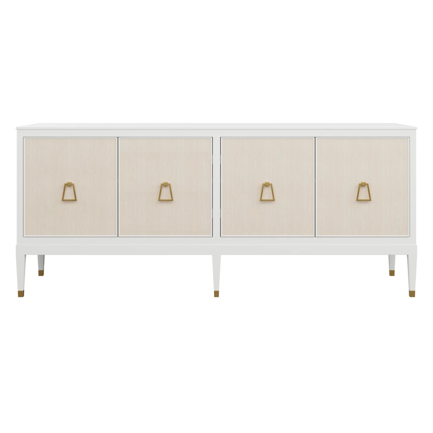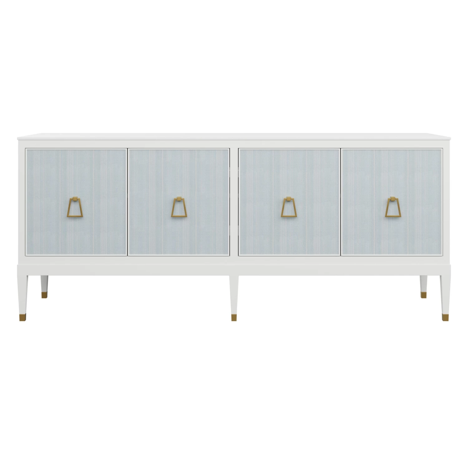 Our Le Cheval Credenza features clean lines and 4 inset doors. Two cabinets house one adjustable shelf each for storage. Brass sabot feet add the finishing touch to this elegant piece.