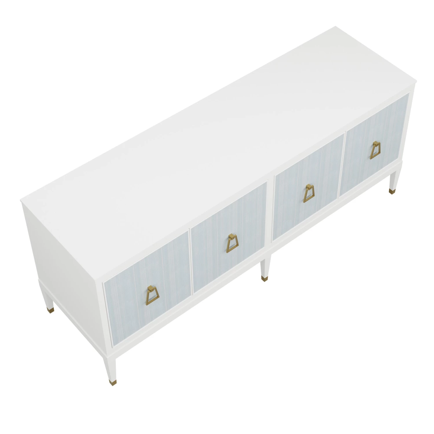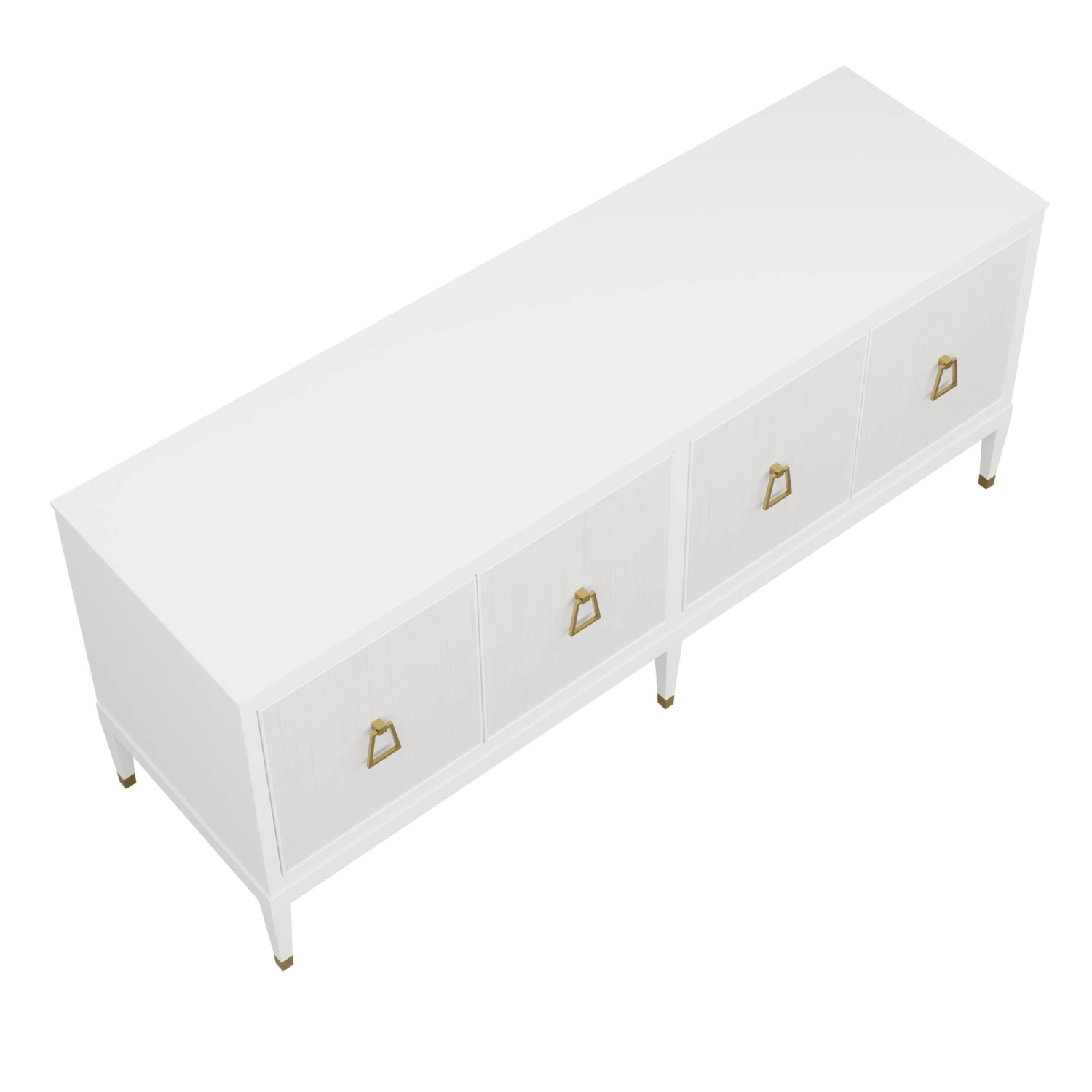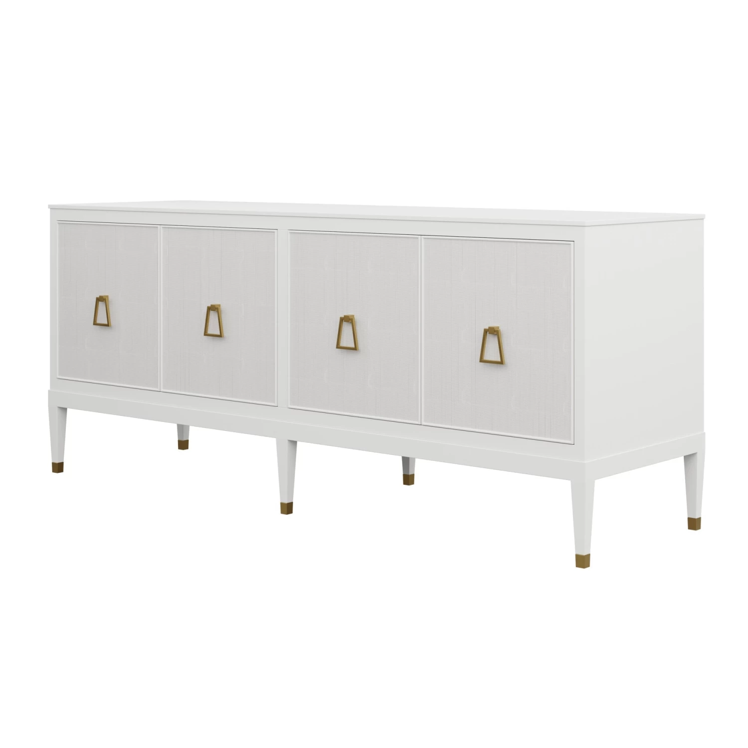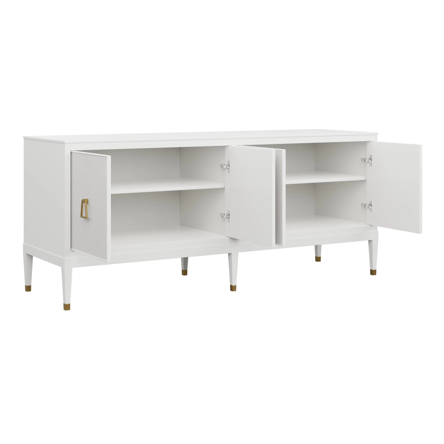 Our Le Cheval Credenza features clean lines and 4 inset doors. Two cabinets house one adjustable shelf each for storage. Brass sabot feet add the finishing touch to this elegant piece.