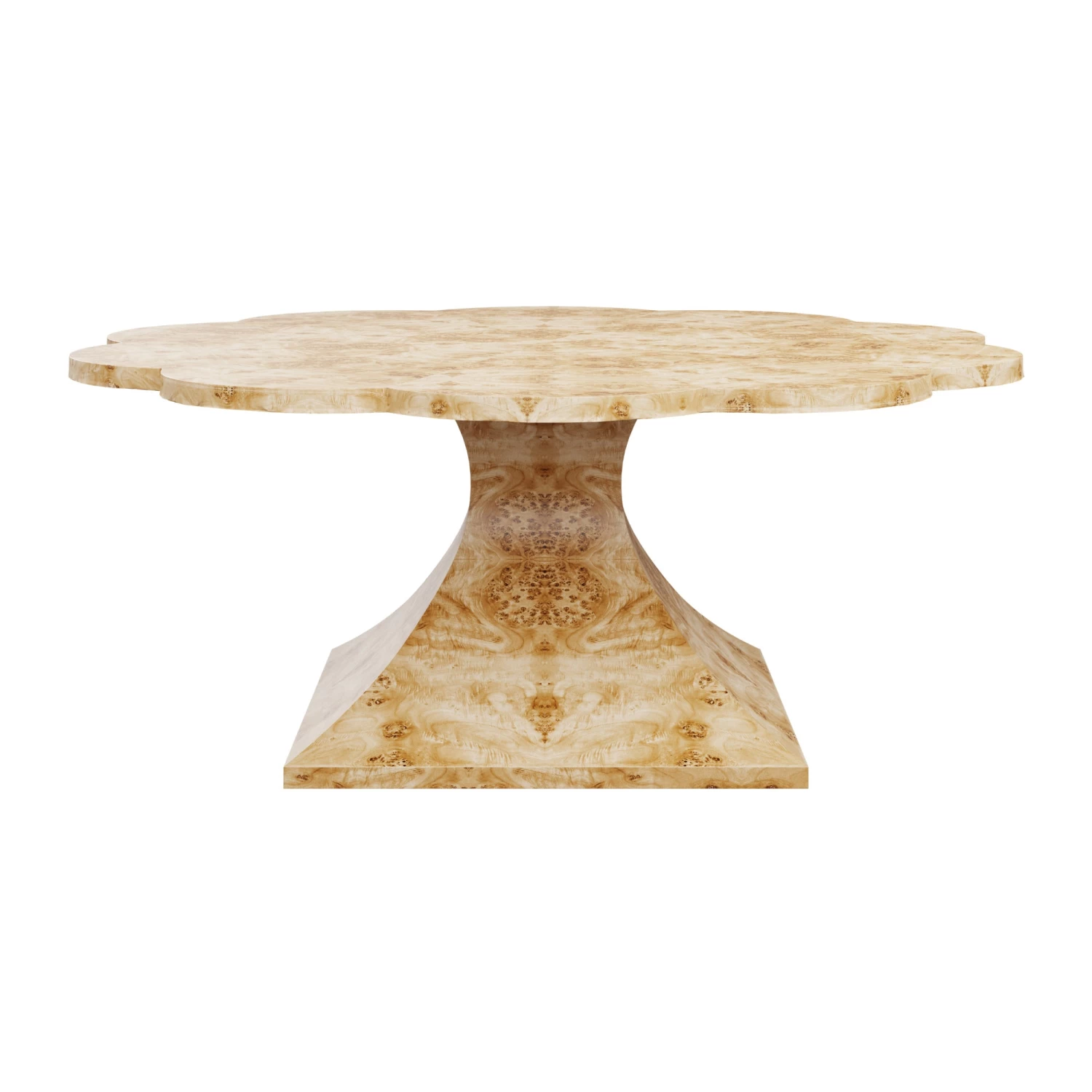 Fully customizable, our Mirabell Dining Table features a stunning hourglass base that looks good from every angle. A scalloped top reminiscent of flower petals adds a touch of feminine whimsy to the overall feel of this design. Choose from lacquer or wood finishes to create the dining table of your dreams.