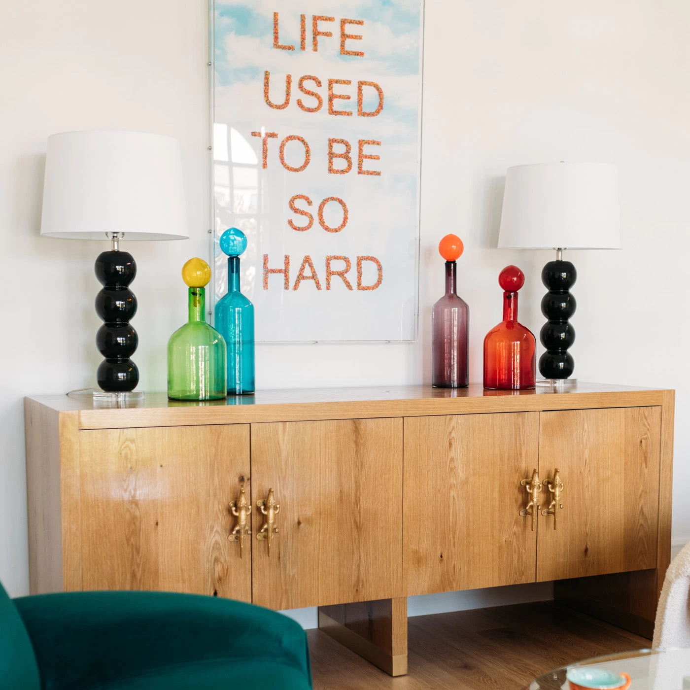 Linear in design with brass sabot detailing, our bespoke Thomas Credenza strikes the perfect balance between simple and sophisticated. Two cabinets open to reveal an adjustable shelf in each for all your storage needs.