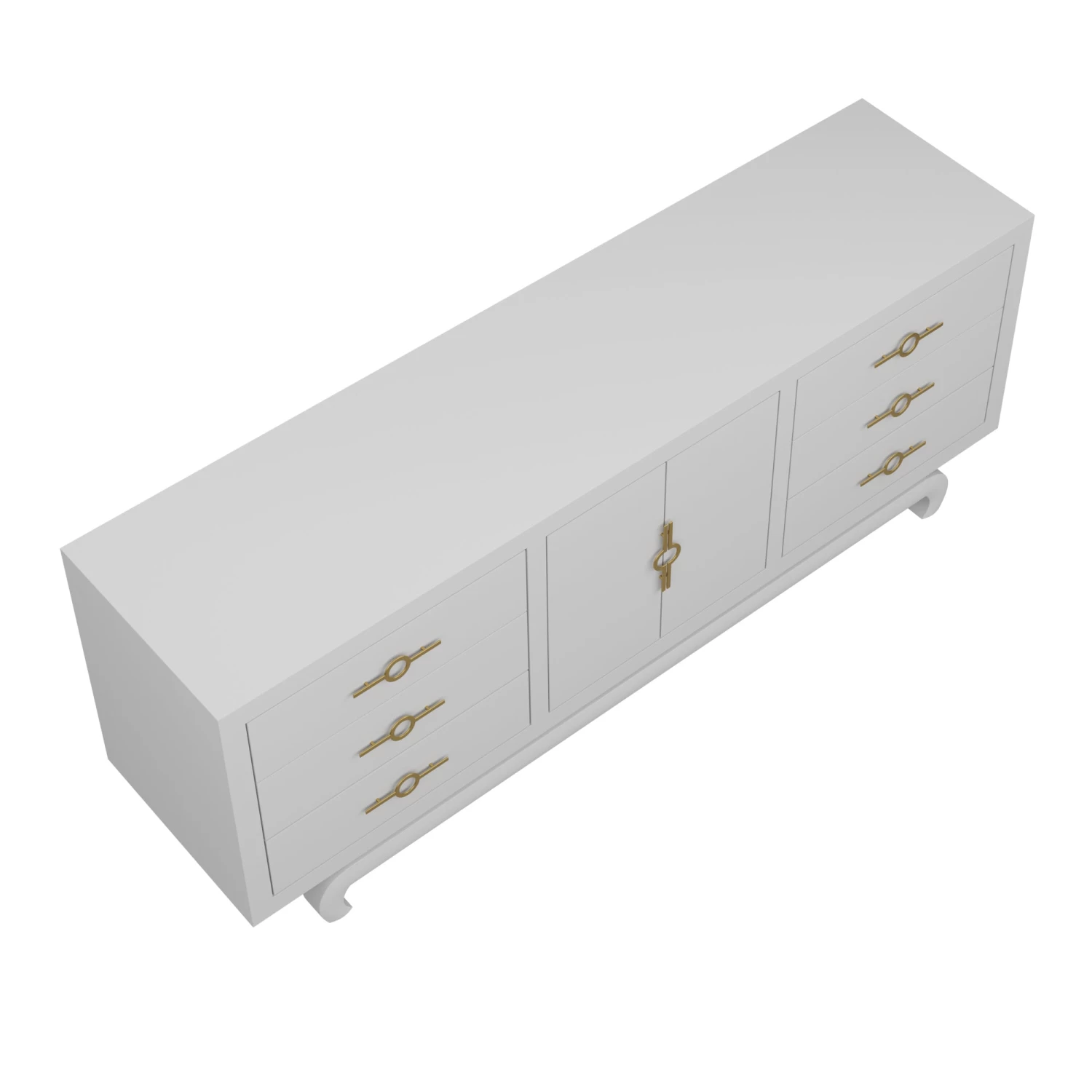 Our bespoke Toulouse Credenza shines with streamlined Ming legs and a simple body shape. Three drawers and one cabinet with an adjustable shelf provide plenty of storage.