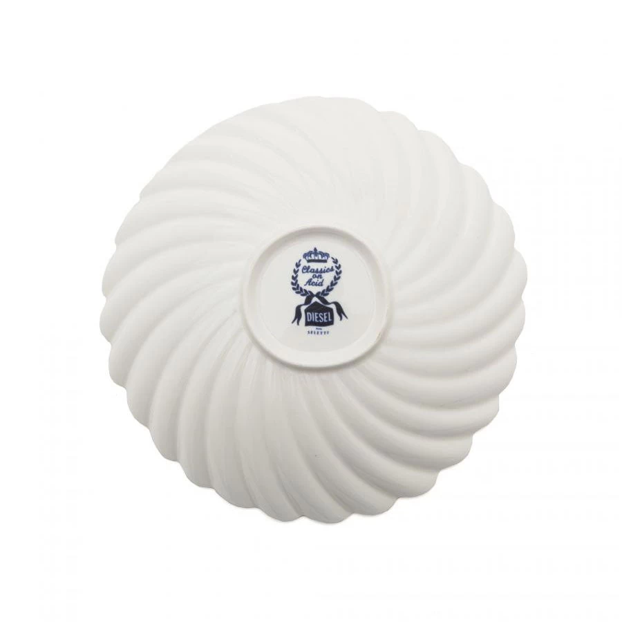 Classic Dutch ceramic with a twist – call it classics on acid. Soup plate by Seletti featuring a warped Delftware motif in blue.
