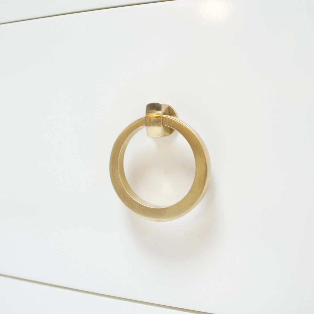 Sly and masterful, our Espionage Chest steals the show with its unique design. White lacquer is accented with brass pulls and sabots for a refined look.