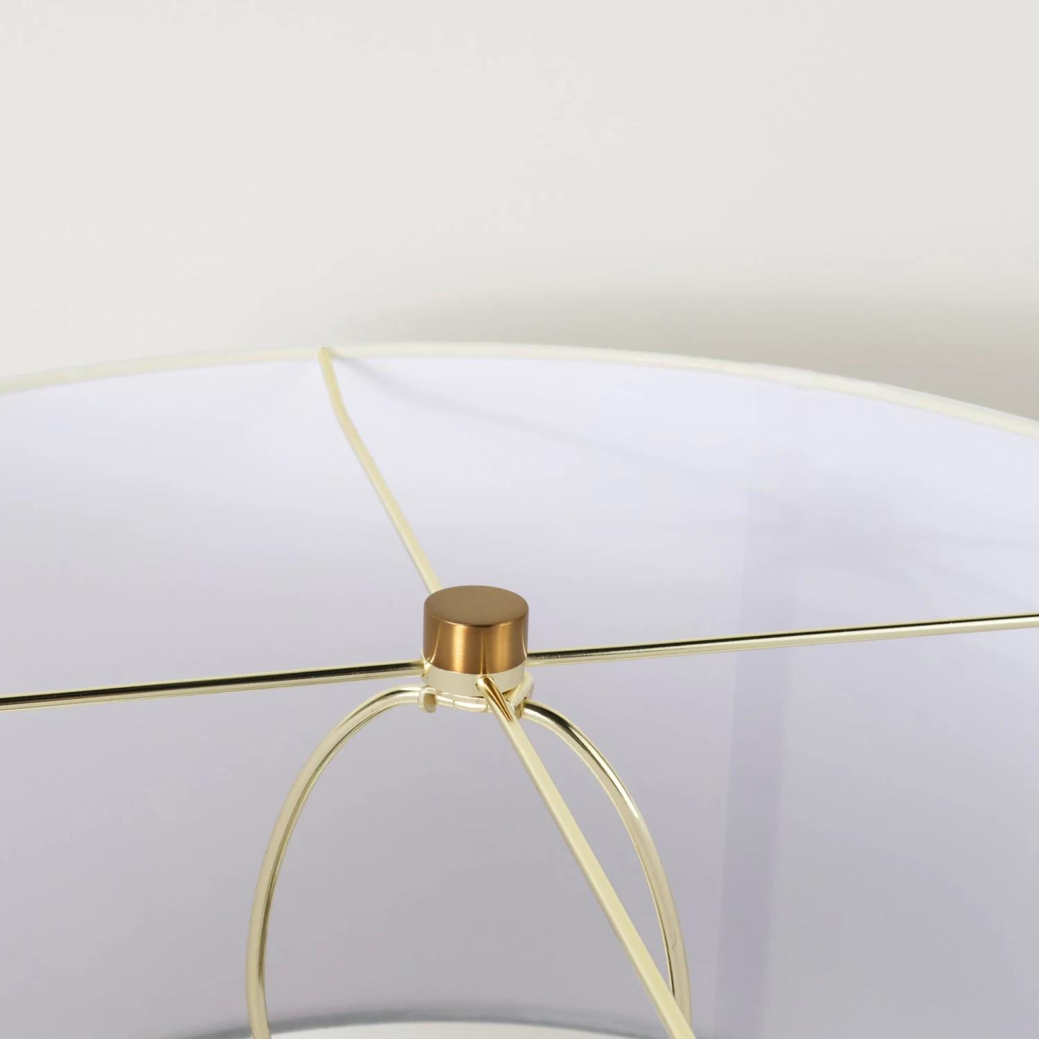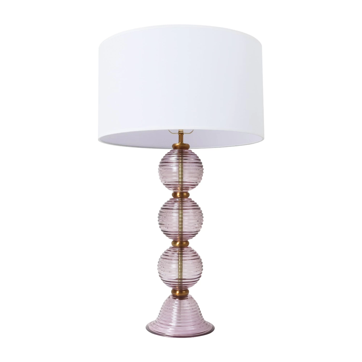 The classy purple hand blown glass base on our Essex Lamp is topped with a white linen shade and gold finial.