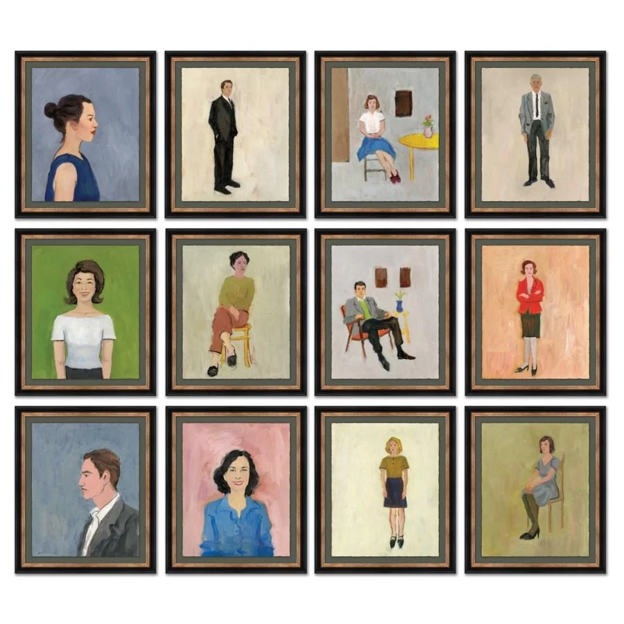Everyday people art print. Archival ink and paper in a brass wood frame with glass panel.