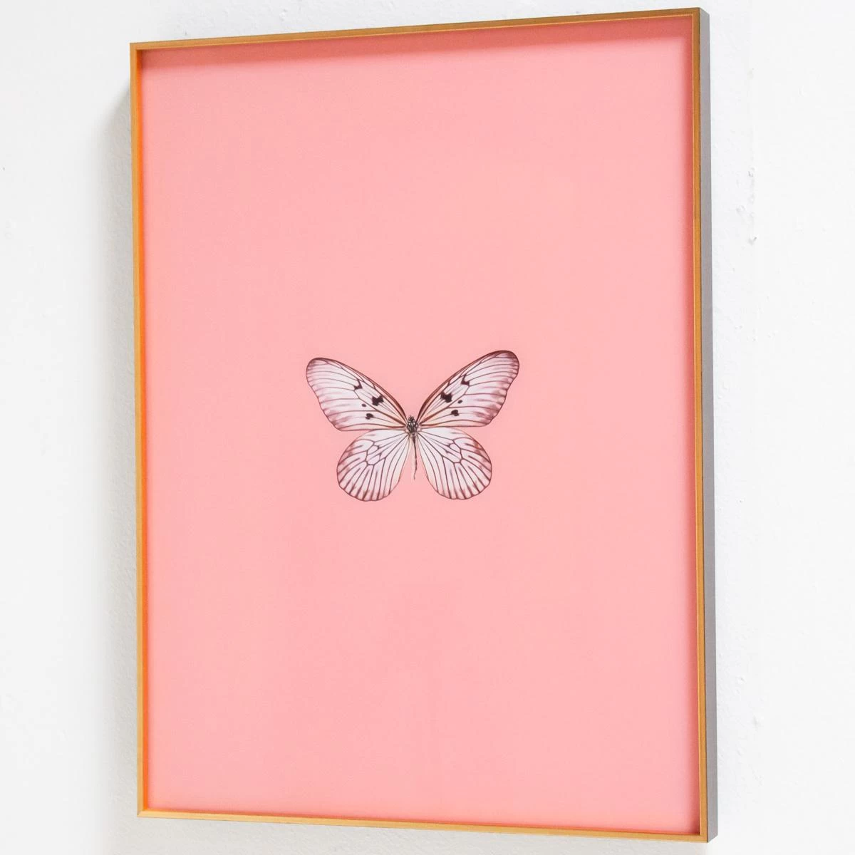 Scout exclusive pastel butterfly artwork. UV printed on acrylic film with a black and gold frame.