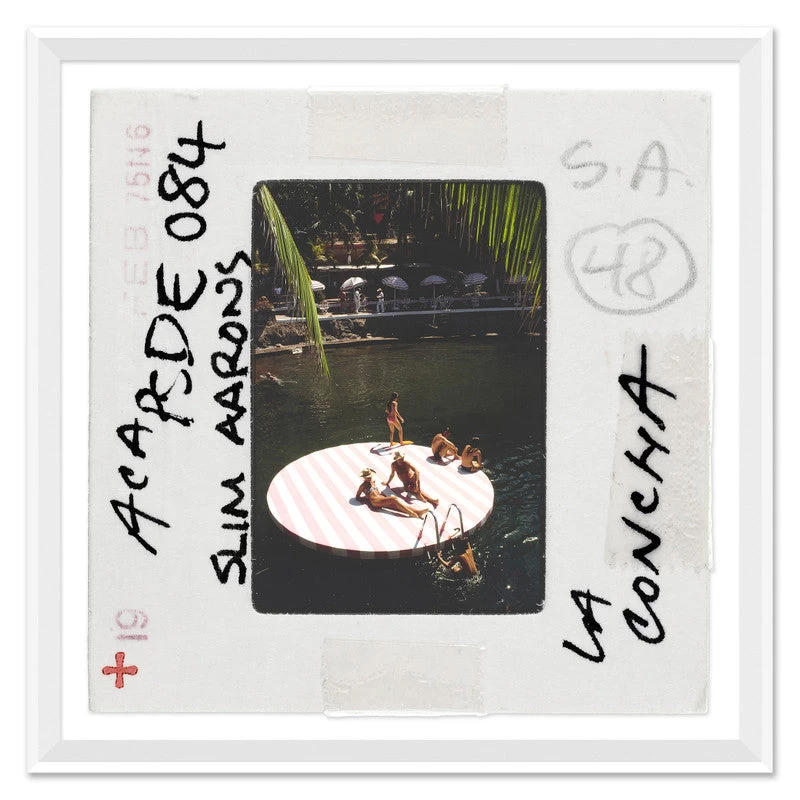 Photography by Slim Aarons of bathers at La Concha Beach Club in Acapulco, Mexico. February 1975.