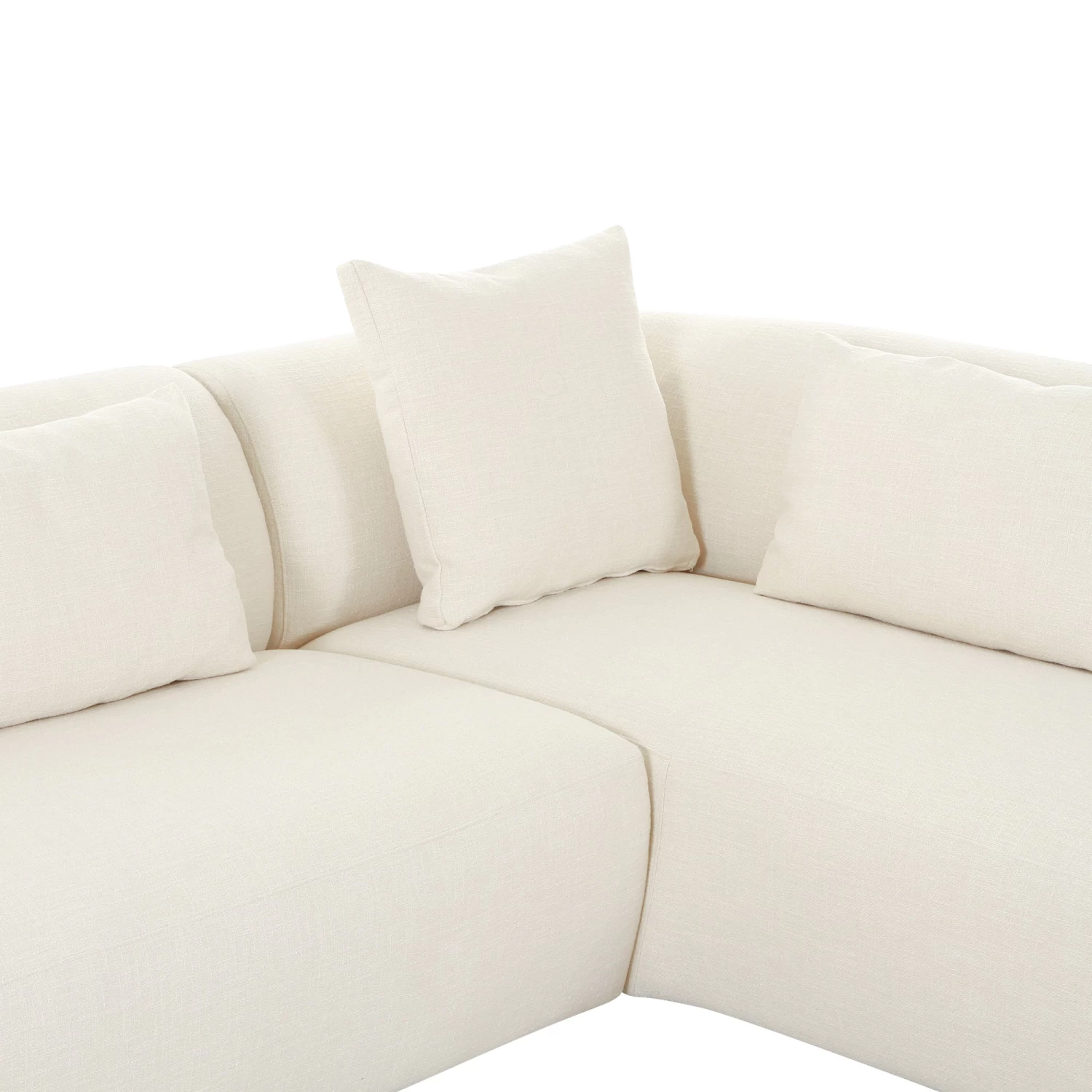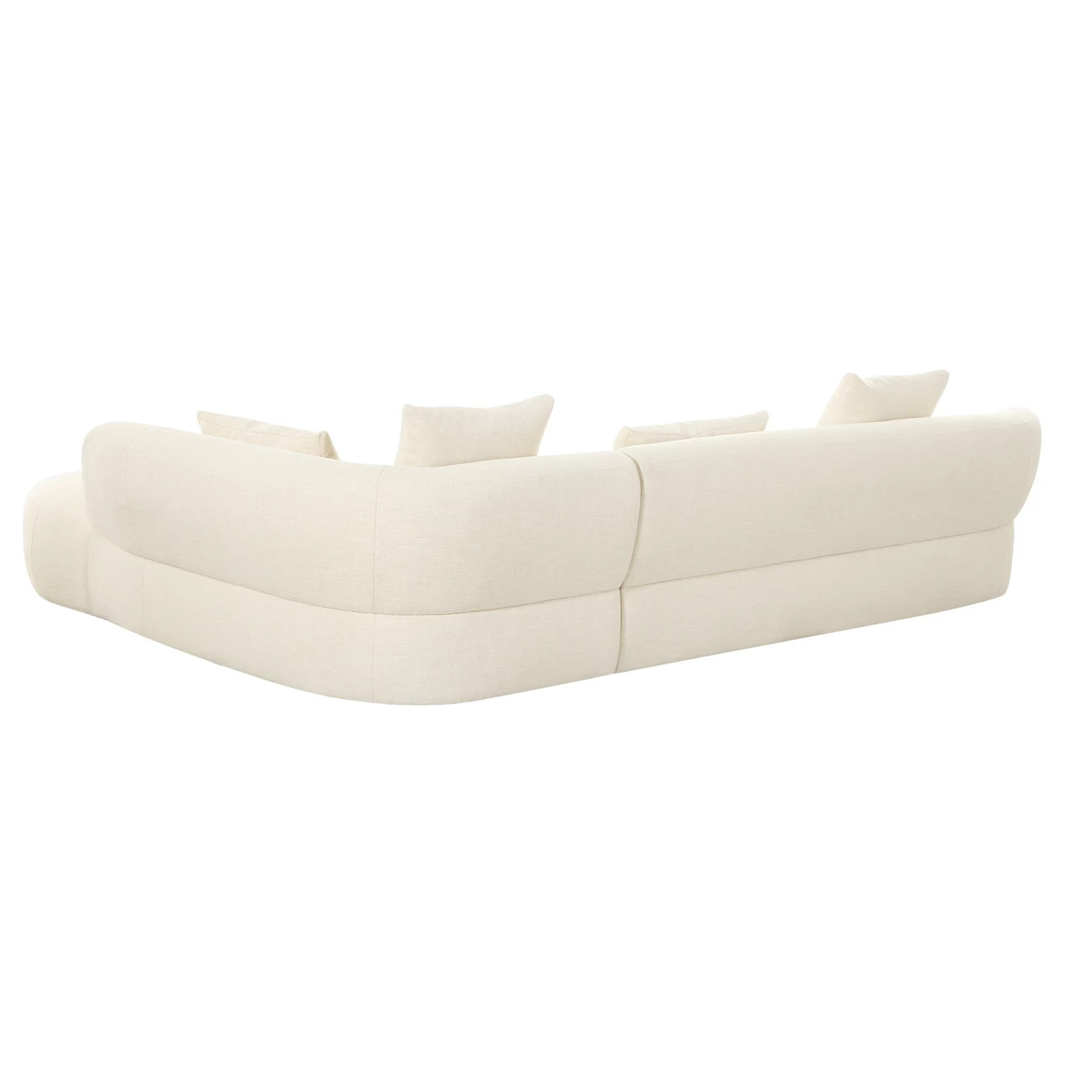 Making a limited run return in ivory tweed, our Iris Sectional features just the right amount of curve. This go-anywhere sectional radiates opulence and luxury with crisp fabric and plush matching throw pillows. Effortlessly versatile, Iris creates an intimate vibe while also providing ample space for a bigger party.