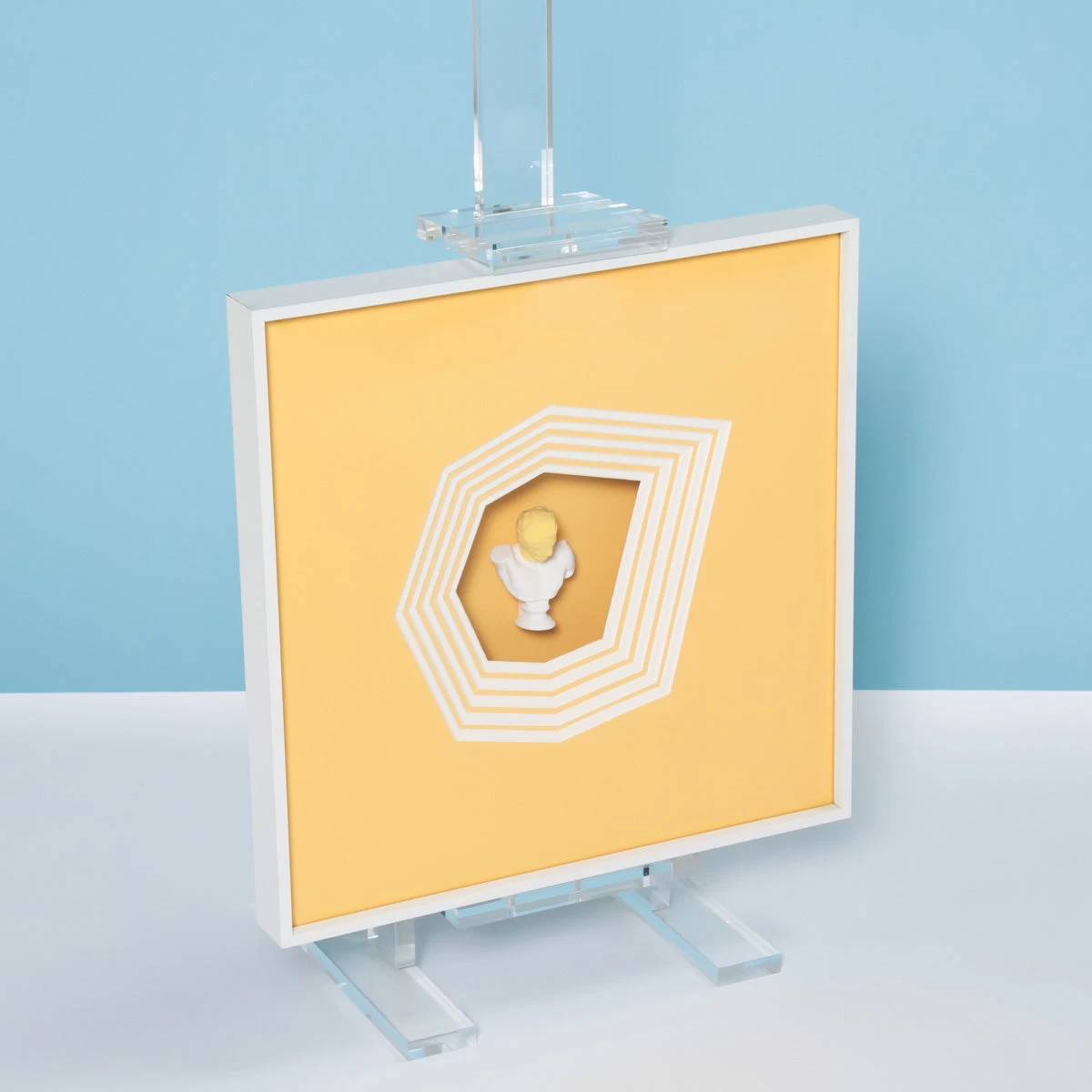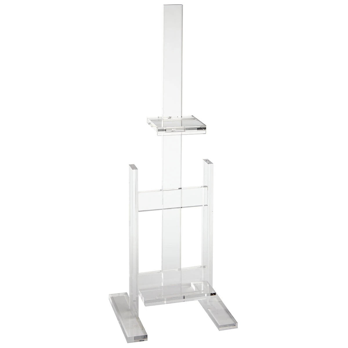 A modern twist on an ancient instrument with convenient adjustable heights, this transparent acrylic disappears to float a painting or book.