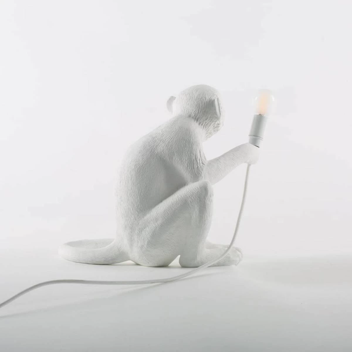 A crazy and crafty member of our Seletti monkey lamp collection. Sitting white table lamp for indoor use.