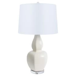 Artfully aesthetic. Handmade in Dallas, this artisan lamp features an off-white finish with a unique geometric shape. An acrylic base and finial complete the look.