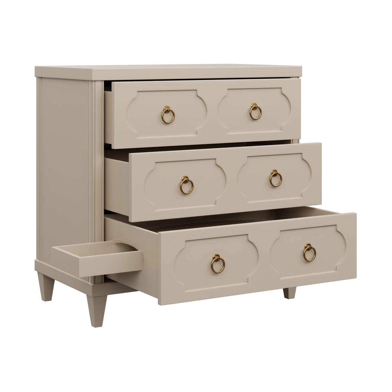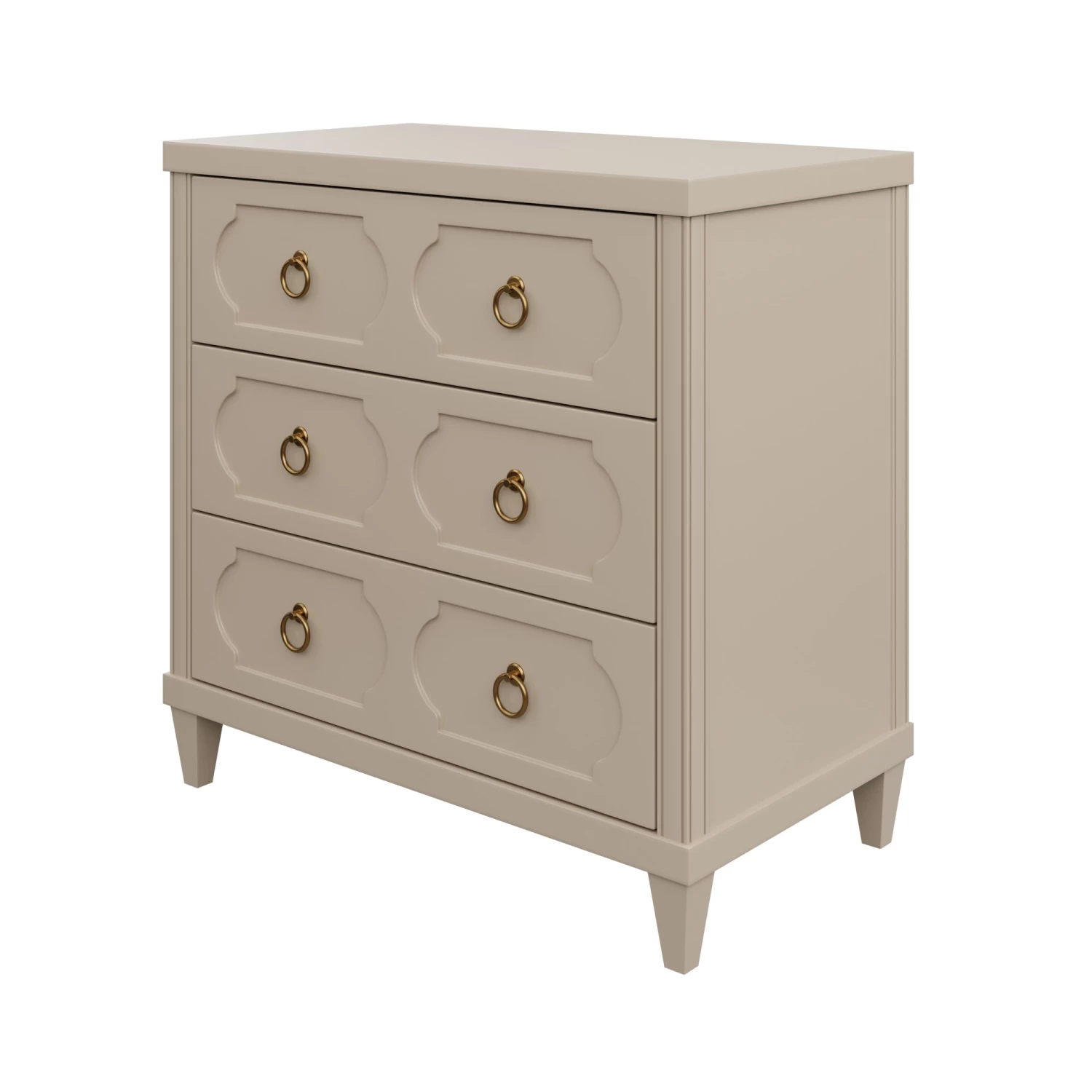 A transitional dream, our Pierce Chest combines traditional design elements with contemporary details. Side fluting and elegant drawer framing effortlessly compliment the glistening brass pulls that adorn each drawer. A matte Sand lacquer finish gives a clean and classy feel.