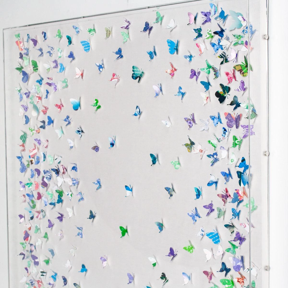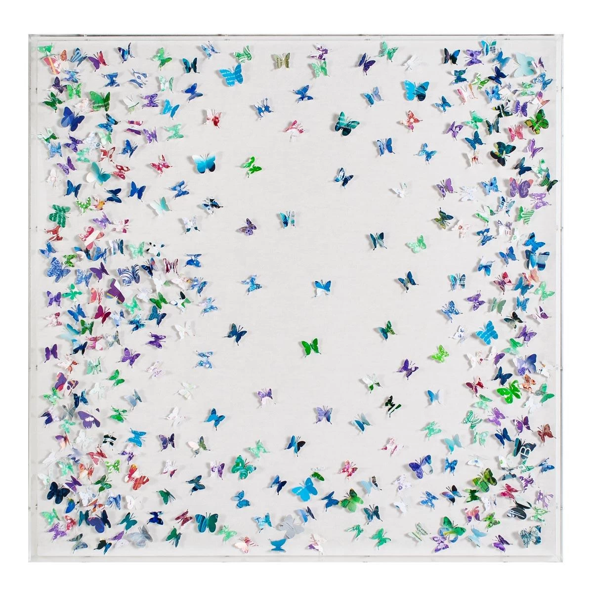 Scattered butterfly art of the Jen Lin Series in an acrylic shadowbox frame.