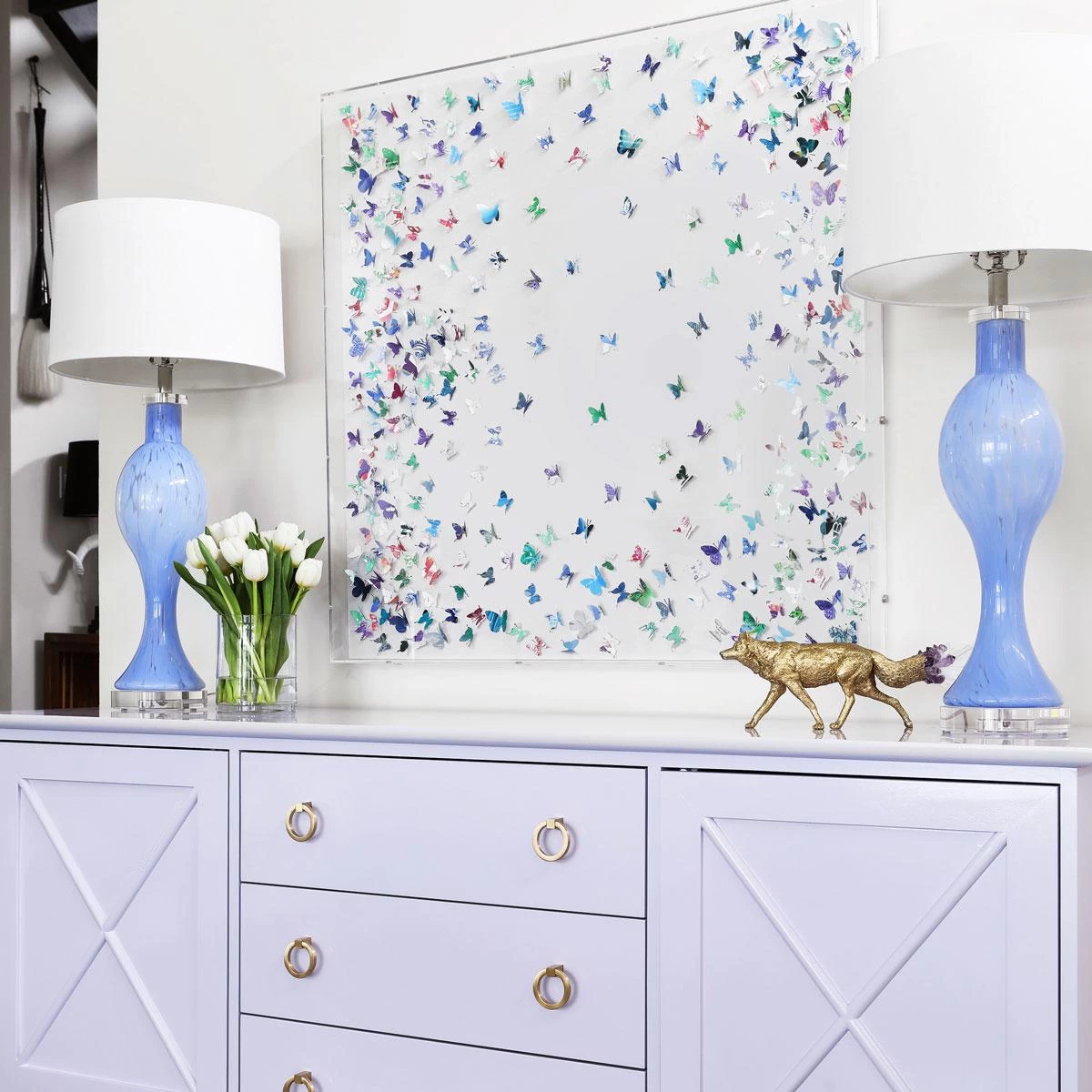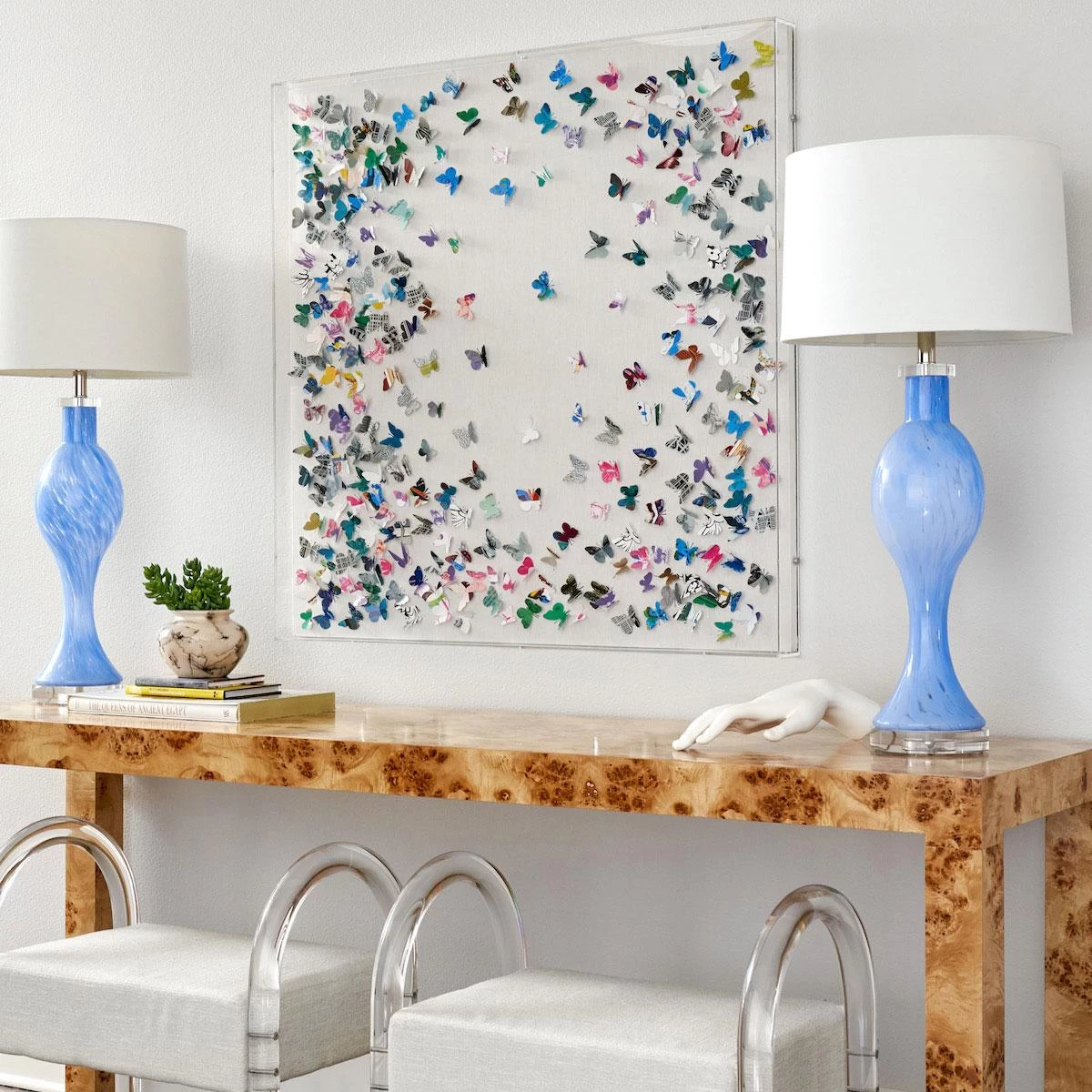 Jen Lin is the creative visionary behind this unique three-dimensional artwork. A team of studio artists make each piece by hand so no two are exactly alike. From book art to scattered butterflies, the Jen Lin series never ceases to amaze and delight with its chic Hong Kong sensibility.