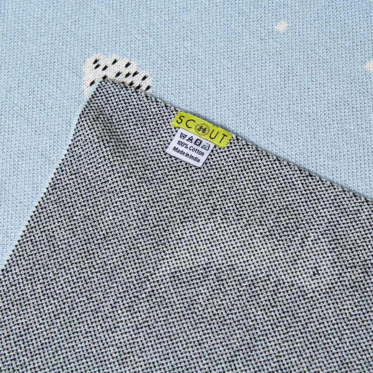 SCOUT LABEL. 100% cotton knit throw blanket.