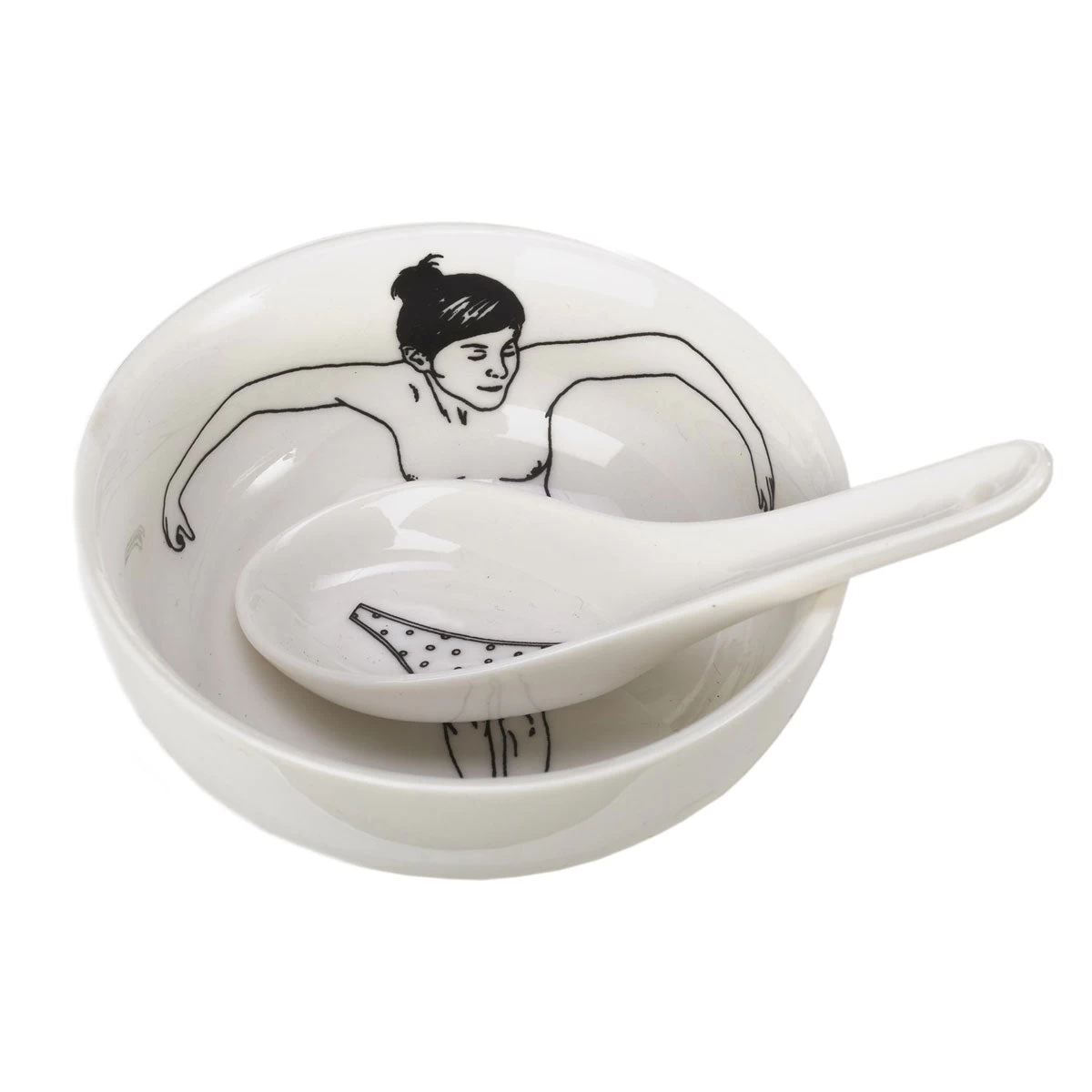 Bring the fun to the table! This undressed set of soup bowls comes with a surprise – illustrations of women that, when filled, appear to be bathing in the soup.