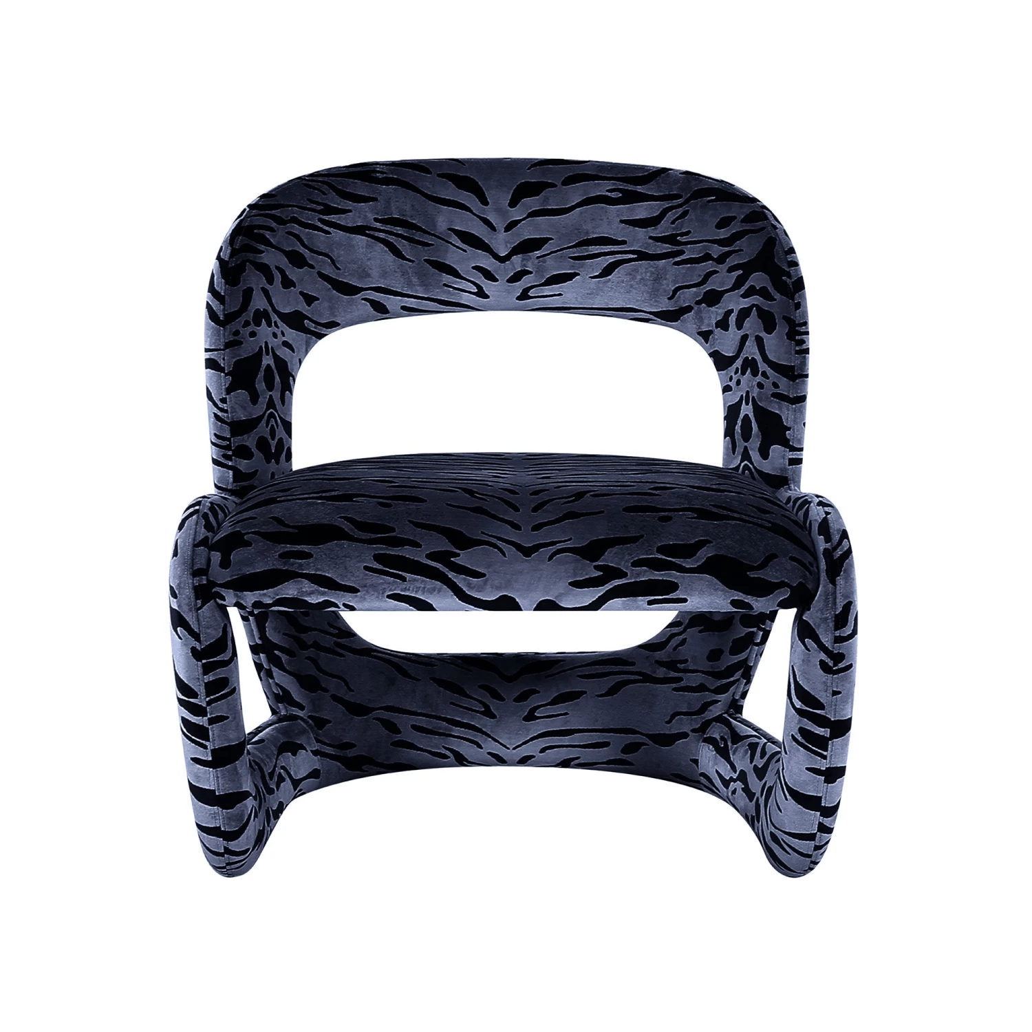 Our Vesper Chair in ink blue tiger stripe fabric draws all eyes. We love the unique curves of this open back design paired with tonal stripes. Set the scene with this one!