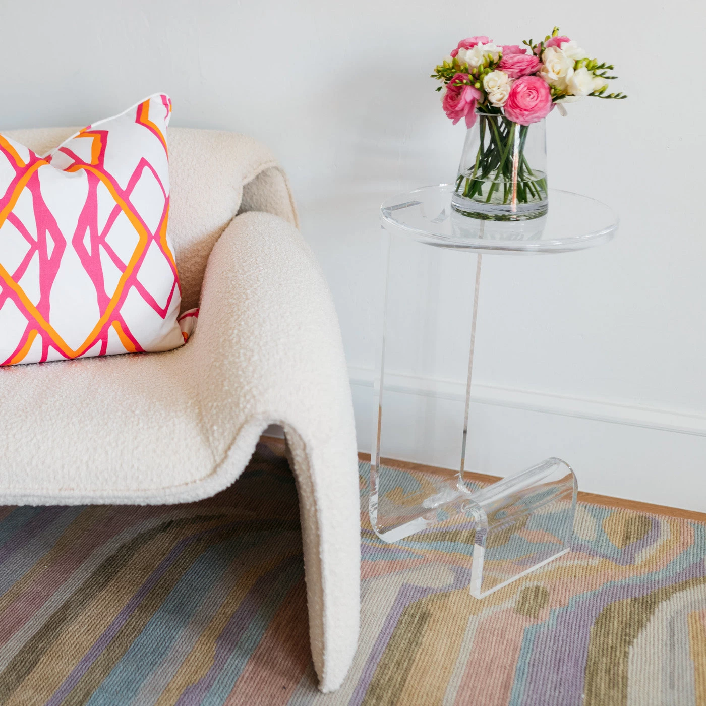 This barely-there acrylic design features a magazine/book holder and minimalist appearance that fits anywhere you need it to.